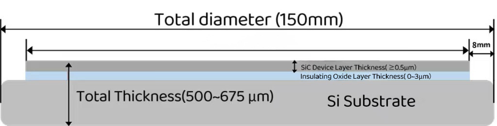 Изолирующий оксидный слой, расположенный между кремниевой подложкой и слоем устройства SiC, является средним слоем пластины SICOI. Изолируя пути тока между верхним и нижним слоями, изолирующий оксидный слой эффективно снижает риск коротких замыканий и гарантирует стабильные электрические характеристики полупроводниковых устройств. Благодаря своей низкой характеристике поглощения он может значительно уменьшить оптическое рассеяние и повысить эффективность передачи оптического сигнала полупроводниковых устройств.